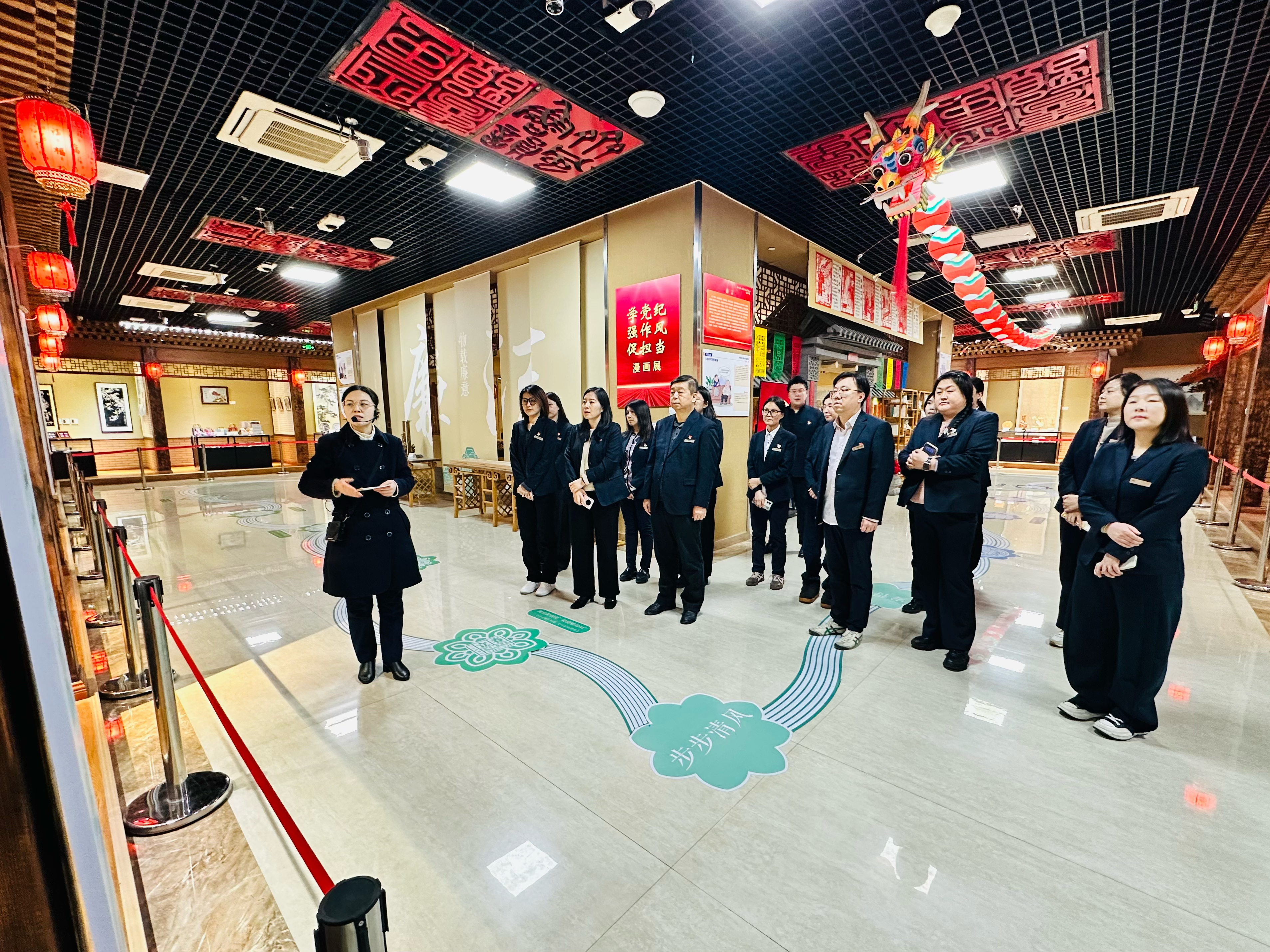 本次展览以“物载廉意 艺承正气”为内核,通过六大沉浸式展区,集中呈现第二届“青未了”杯廉洁文化作品创作大赛征集评选出的200余件优秀作品。客服管理部及全成政务公司的党员和入党积极分子认真观看展品,聆听现场讲解,从周村织锦画的“江山永固、气韵清正”,到剪纸艺术的“廉韵悠长”,再到锡雕的“出淤泥而不染”,沉浸式感悟传统工艺的精湛和共产党员所肩负的使命担当。