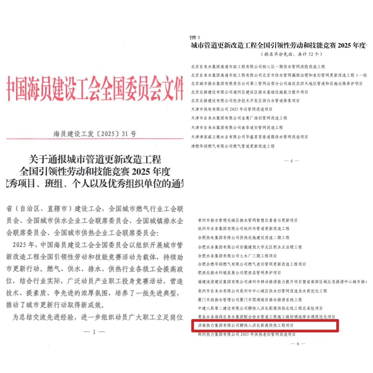 喜报!济南热力集团“聊热入济”项目荣获国家级奖项
