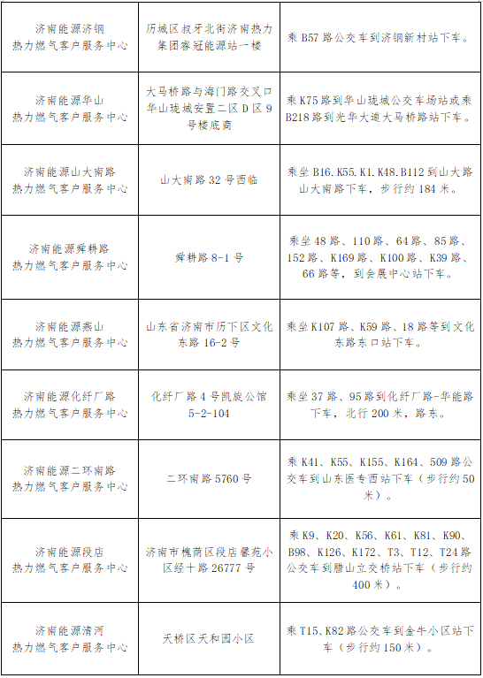 为进一步延伸服务时间、提升服务效率,济南热力集团设置了6处24小时自助营业厅,包括解放东路热力燃气客户服务中心、金鸡岭热力燃气客户服务中心、匡山热力燃气客户服务中心、华山热力燃气客户服务中心、济钢热力燃气客户服务中心、热力西部客户服务中心,为客户提供更加便民、智能、高效、贴心的一站式“温心”服务。这些自助厅内均配备气热自助一体机,支持交费、过户、发票打印等燃气、供热全业务自助办理,操作简便、高效省时,能够有效满足客户多时段的服务需求,实现“自助办、随时办、放心办”。